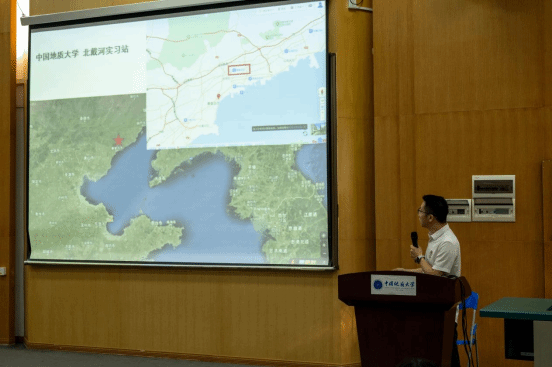 北戴河实习队队长陈林向同学们介绍了威海实习基地的基本情况,详细说明了威海实习基地与北戴河实习基地的主要区别与联系,从威海实习基地建设背景、地理位置、基地硬件条件到实习路线安排等多维度展开介绍,激发了同学们对于地质实习的期待和热情。